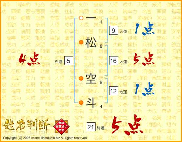 一松空斗さんの総運は21画の5点!