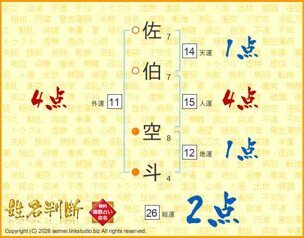 佐伯空斗さんの天運は14画の1点!