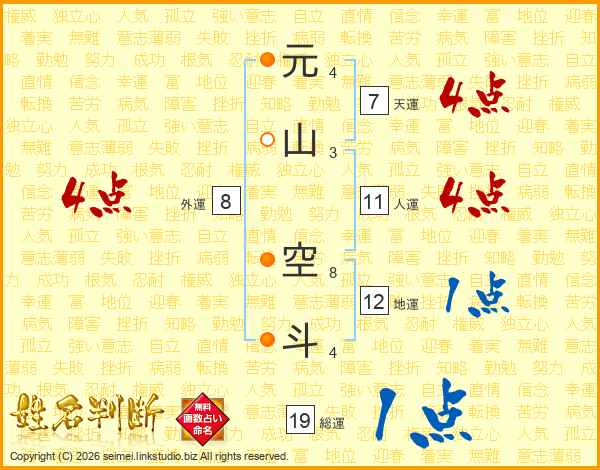 元山空斗さんの人運は11画の4点!