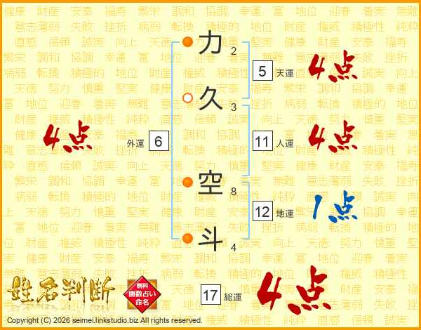 力久空斗さんの総運は17画の4点!