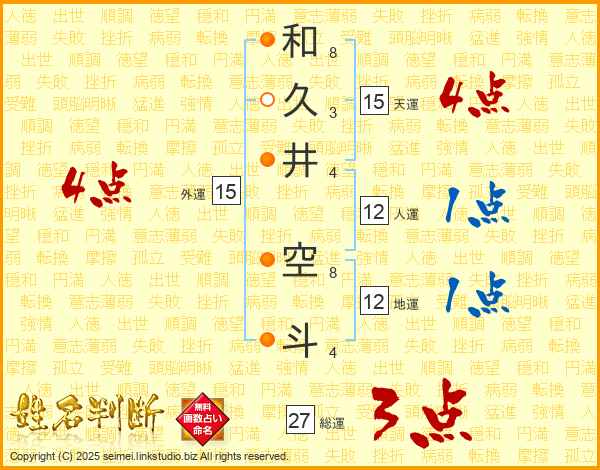 和(8画)久(3画)井(4画) 空(8画)斗(4画)