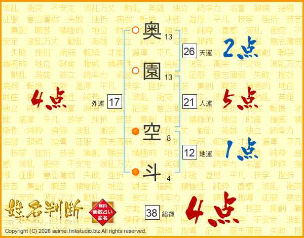 奥園空斗さんの外運は17画の4点!