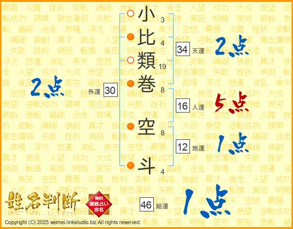 小(3画)比(4画)類(19画)巻(8画) 空(8画)斗(4画)