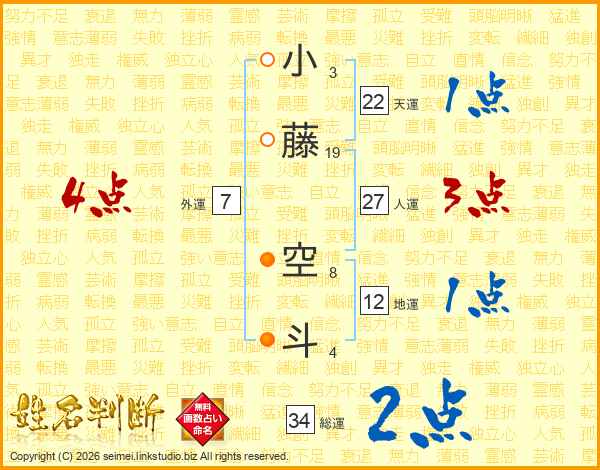 小藤空斗さんの総運は34画の2点!
