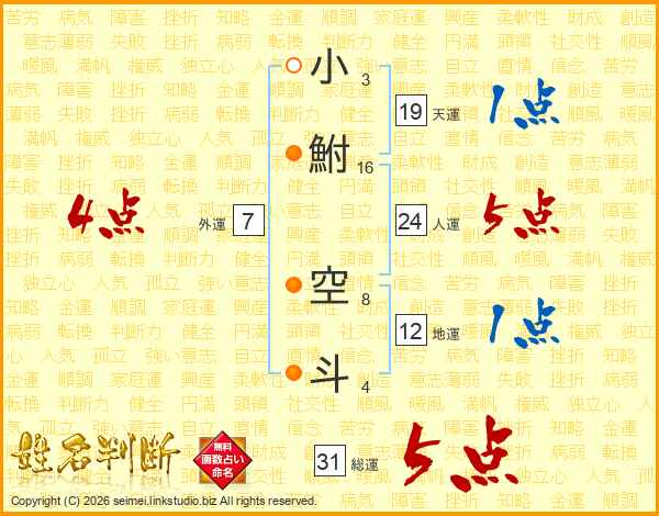 小(3画)鮒(16画) 空(8画)斗(4画)