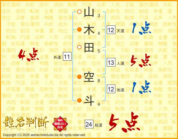 山(3画)木(4画)田(5画) 空(8画)斗(4画)