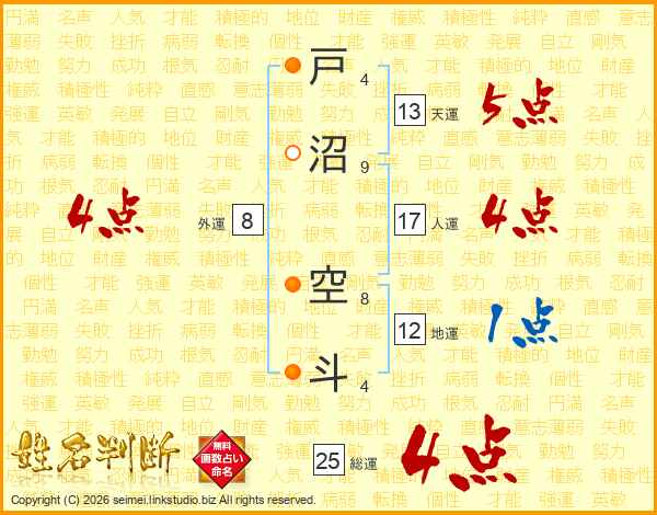 戸沼空斗さんの人運は17画の4点!