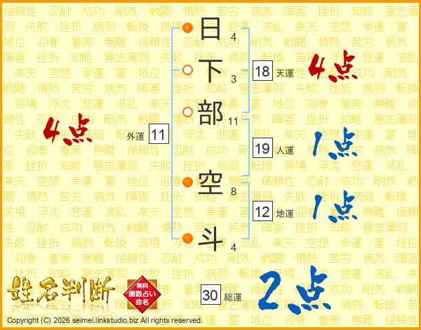 日(4画)下(3画)部(11画) 空(8画)斗(4画)