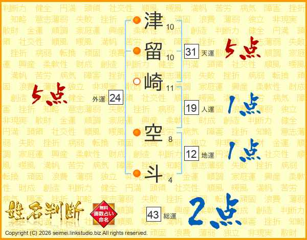 津留崎空斗さんの天運は31画の5点!