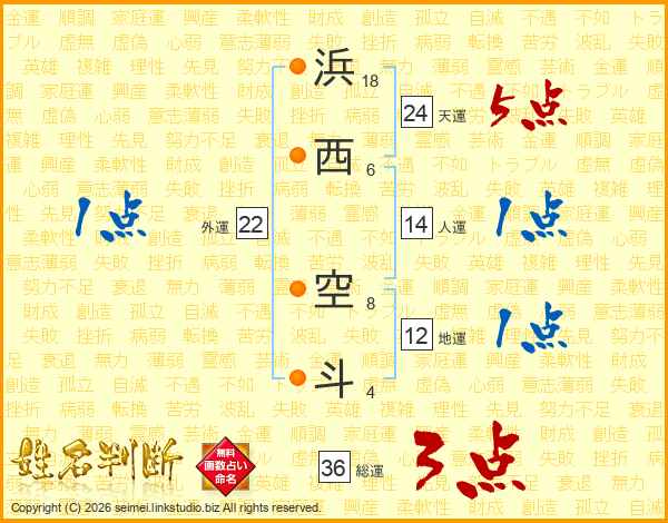 浜西空斗さんの総運は36画の3点!