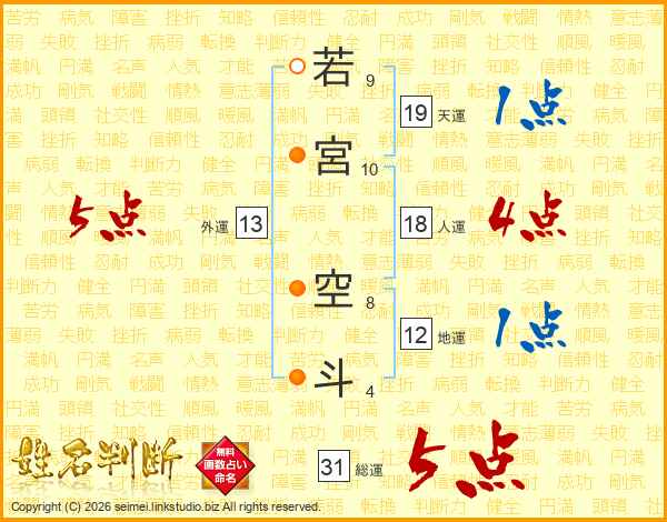 若宮空斗さんの総運は31画の5点!