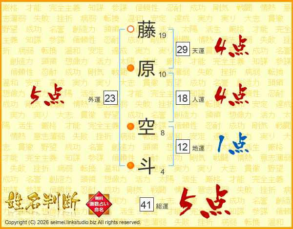 藤原空斗さんの総運は41画の5点!