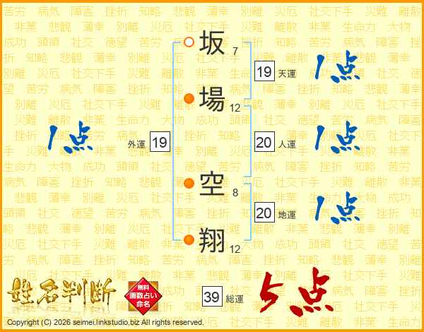 坂場空翔さんの総運は39画の5点!