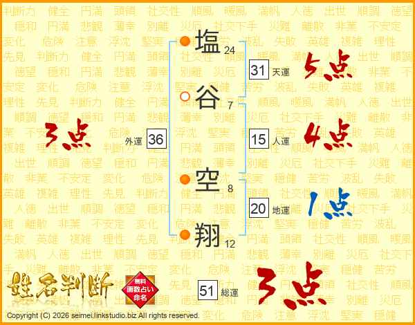 塩谷空翔さんの総運は51画の3点!