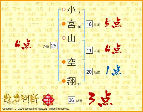 小宮山空翔さんの総運は36画の3点!