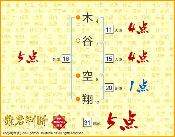 木谷空翔さんの総運は31画の5点!