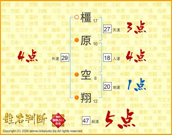 橿原空翔さんの総運は47画の5点!