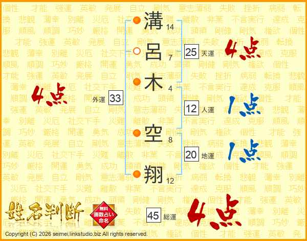 溝(14画)呂(7画)木(4画) 空(8画)翔(12画)
