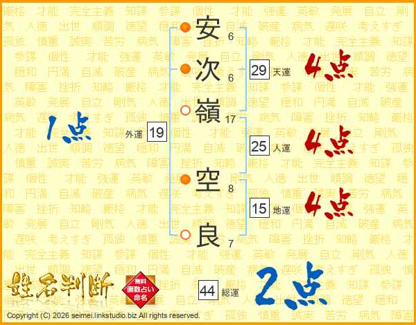 安次嶺空良さんの総運は44画の2点!