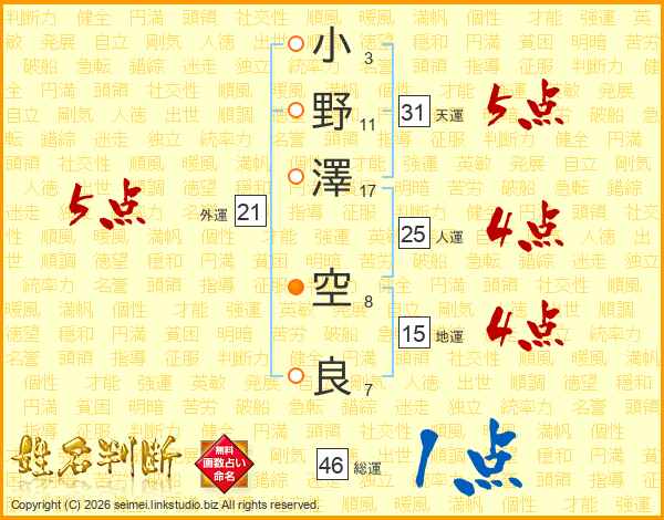 小野澤空良さんの天運は31画の5点!