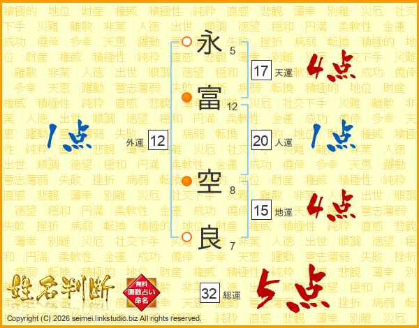 永(5画)富(12画) 空(8画)良(7画)