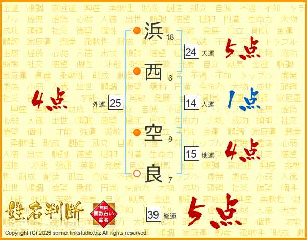 浜西空良さんの総運は39画の5点!