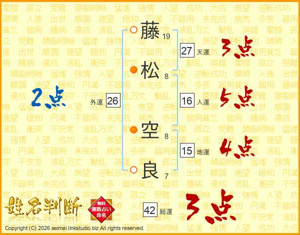 藤(19画)松(8画) 空(8画)良(7画)