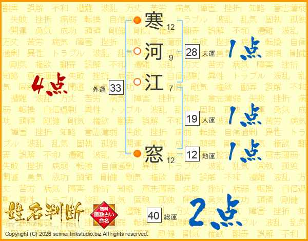 寒河江窓さんの総運は40画の2点!