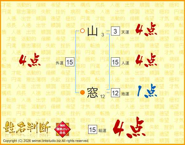 山窓さんの総運は15画の4点!