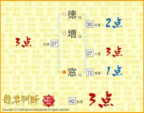 徳増窓さんの人運は27画の3点