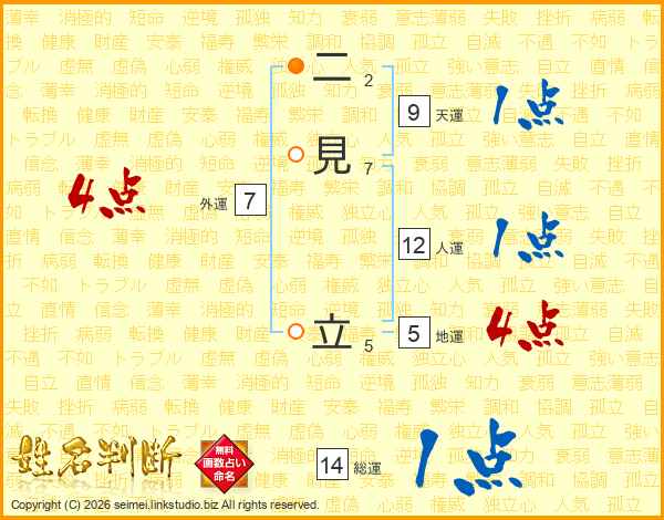 二見立さんの総運は14画の1点!