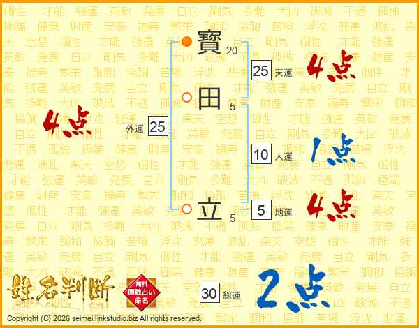 寳田立さんの総運は30画の2点!