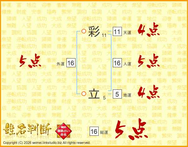 彩立さんの総運は16画の5点!
