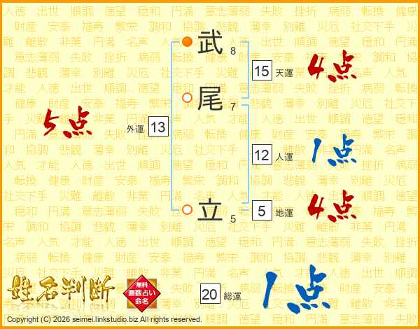 武尾立さんの総運は20画の1点!