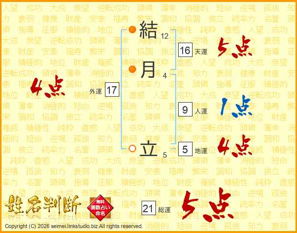 結月立さんの総運は21画の5点!