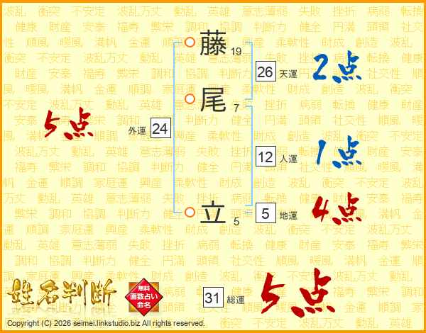 藤尾立さんの総運は31画の5点!