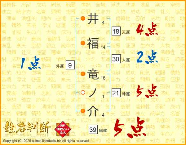 井(4画)福(14画) 竜(16画)ノ(1画)介(4画)