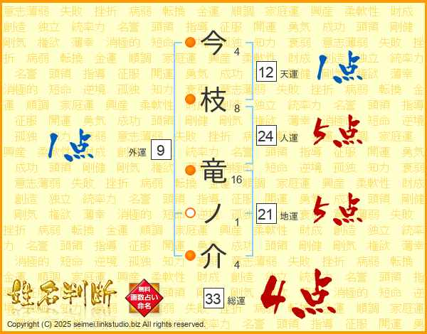 今枝竜ノ介さんの総運は33画の4点!