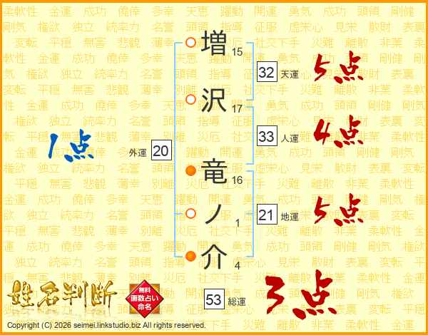 増沢竜ノ介さんの人運は33画の4点!