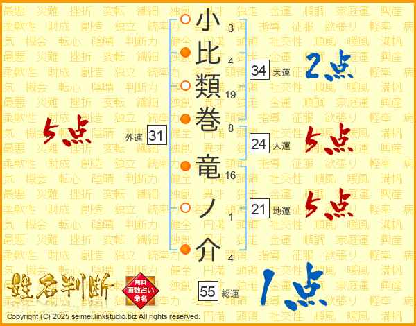 小(3画)比(4画)類(19画)巻(8画) 竜(16画)ノ(1画)介(4画)