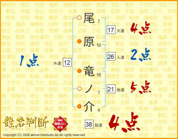 尾原竜ノ介さんの総運は38画の4点!