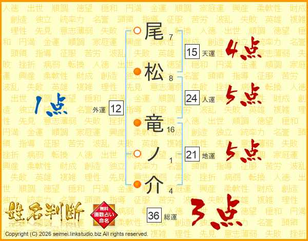尾松竜ノ介さんの総運は36画の3点!