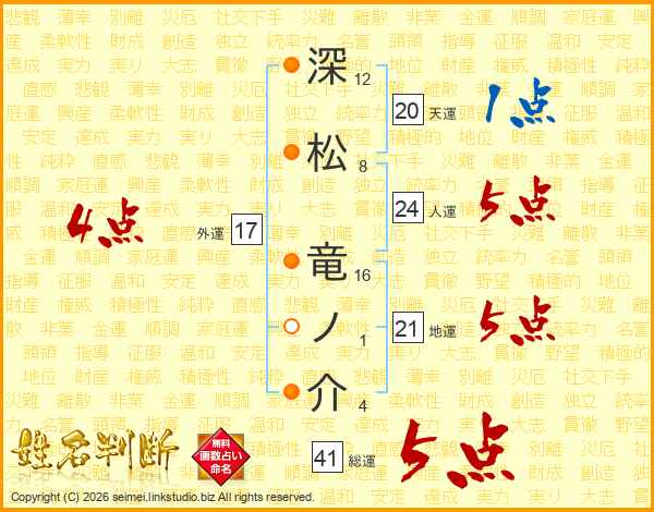 深松竜ノ介さんの総運は41画の5点!