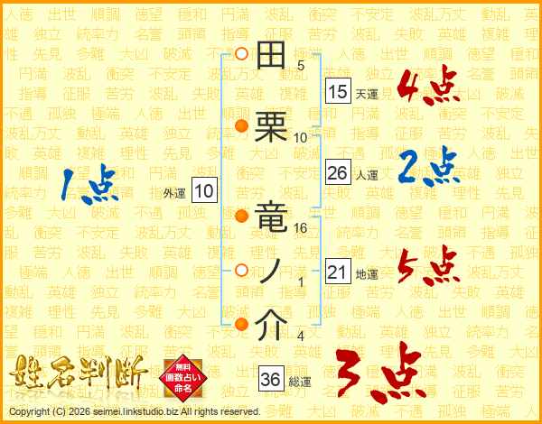 田栗竜ノ介さんの総運は36画の3点!