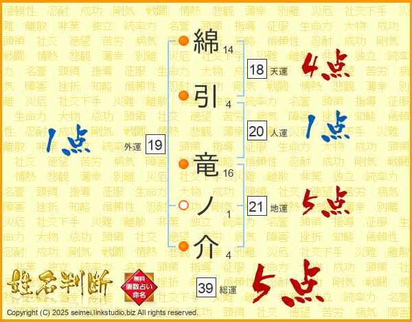 綿引竜ノ介さんの総運は39画の5点!