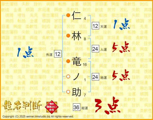 仁林竜ノ助さんの総運は36画の3点!