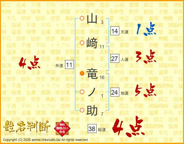 山﨑竜ノ助さんの総運は38画の4点!