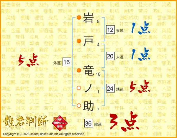 岩戸竜ノ助さんの総運は36画の3点!