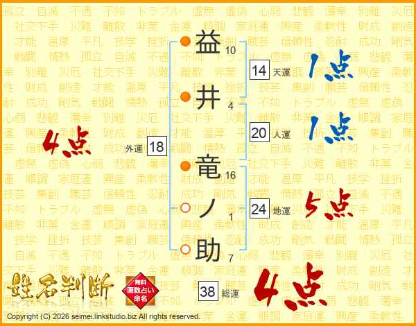 益井竜ノ助さんの総運は38画の4点!