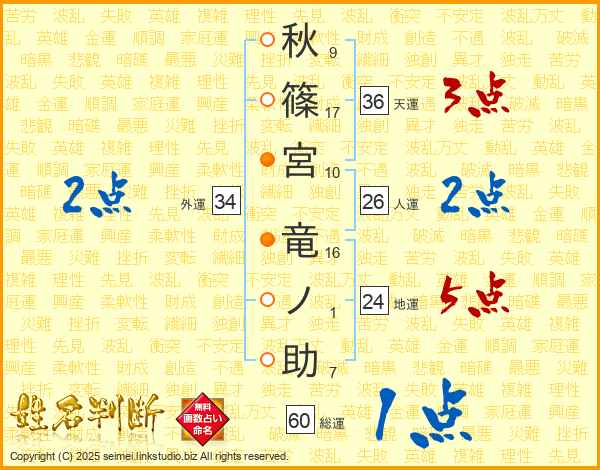 秋篠宮竜ノ助さんの総運は60画の1点!